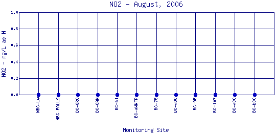 The above map indicates water quality monitoring sites. To view data at a specific site select it from the map with the mouse.