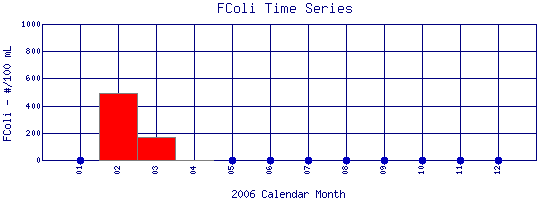 is found in the intestinal tracts of mammals. High concentrations of the bacteria in water or sludge suggest the presence of disease-causing organisms, and may be caused by septic tank failure, poor pasture and animal keeping practices, pet waste, and urban runoff. To measure fecal coliform bacteria, water samples are collected in sterilized containers, filtered, and incubated at a certain temperature. The resulting bacterial colonies that form are counted and recorded as the number of colony producing units per 100 ml of water (CPU/100 ml). Safe drinking water should have fecal coliform counts of 0 CPU/100 ml. For safe swimming, concentrations less than 200 CPU/100 ml is desirable, and for boating, less than 1000 CPU/100 ml is desirable. However, these standards may vary at the local, state, and federal level. |