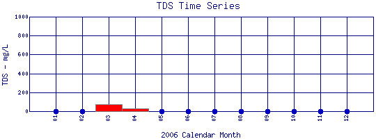 Total Dissolved Solids Time Series for 2006 Middle Boulder Creek Above North Boulder Creek Confluence |