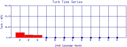Turbidity Time Series for 2006 Como Creek where it enters Lakewood Res. |