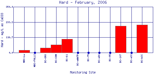 Hardness generally refers to the amount of calcium and magnesium in water. In household use, these cations (ions with a charge greater than +1) can prevent soap from sudsing and leave behind a white scum in bathtubs. In the aquatic environment, calcium and magnesium help keep fish from absorbing metals, such as lead, arsenic, and cadmium, into their bloodstream through their gills. Therefore, the harder the water, the less easy it is for toxic metals to absorb onto gills. Water in the Boulder Creek watershed is generally soft because the water comes mainly from melting snow which is low in minerals and metals.