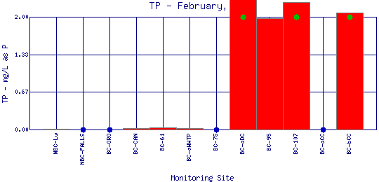 The above map indicates water quality monitoring sites. To view data at a specific site select it from the map with the mouse.