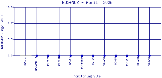 Longitudinal Nitrate + Nitrite Profiles for April, 2006