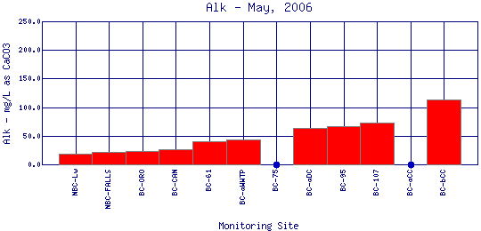 Alkalinity refers to how well a water body can neutralize acids. Alkalinity measures the amount of alkaline compounds in water, such as carbonates (CO3 2-), bicarbonates (HCO3 -), and hydroxides (OH-). These compounds are natural buffers that can remove excess hydrogen ions that have been added from sources such as acid rain or acid mine drainage. Alkalinity mitigates or relieves metals toxicity by using available HCO3 - and CO3 2- to take metals out of solution, thus making it unavailable to fish. Alkalinity is affected by the geology of the watershed; watersheds containing limestone will have a higher alkalinity than watersheds where granite is predominant. The Boulder Creek Watershed is composed primarily of granite rocks, thus the water has a lower alkalinity content.