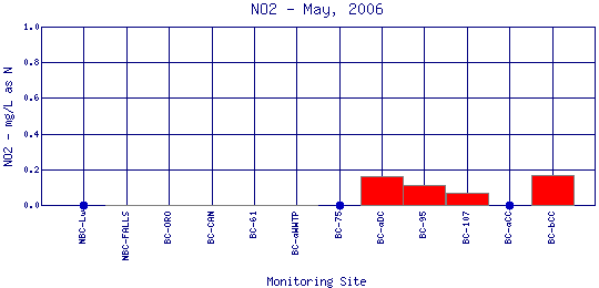 The above map indicates water quality monitoring sites. To view data at a specific site select it from the map with the mouse.
