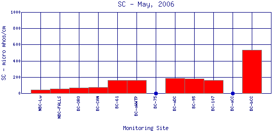 Longitudinal Specific Conductance Profiles for May, 2006