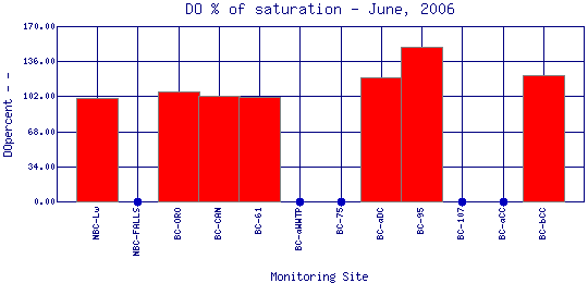 Longitudinal DO Percent of Saturation Profiles for June, 2006