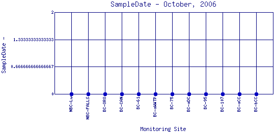 The above map indicates water quality monitoring sites. To view data at a specific site select it from the map with the mouse.
