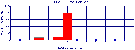 is found in the intestinal tracts of mammals. High concentrations of the bacteria in water or sludge suggest the presence of disease-causing organisms, and may be caused by septic tank failure, poor pasture and animal keeping practices, pet waste, and urban runoff. To measure fecal coliform bacteria, water samples are collected in sterilized containers, filtered, and incubated at a certain temperature. The resulting bacterial colonies that form are counted and recorded as the number of colony producing units per 100 ml of water (CPU/100 ml). Safe drinking water should have fecal coliform counts of 0 CPU/100 ml. For safe swimming, concentrations less than 200 CPU/100 ml is desirable, and for boating, less than 1000 CPU/100 ml is desirable. However, these standards may vary at the local, state, and federal level. |