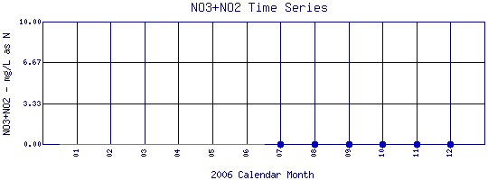 Nitrate + Nitrite Time Series for 2006 Como Creek where it enters Lakewood Res. |