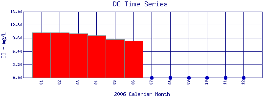 Select on the parameter name to view all Dissolved Oxygen time series plots on the basin map. Select on the table date to view stream Dissolved Oxygen profiles observed on that date. Select here to view all parameters at this site.