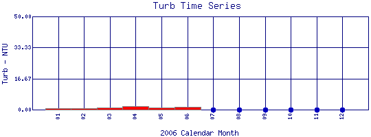 Select on the parameter name to view all Turbidity time series plots on the basin map. Select on the table date to view stream Turbidity profiles observed on that date. Select here to view all parameters at this site.
