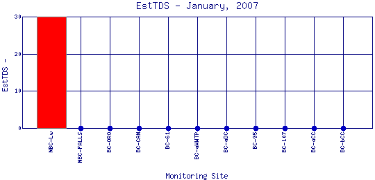 The above map indicates water quality monitoring sites. To view data at a specific site select it from the map with the mouse.