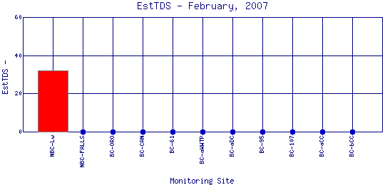 The above map indicates water quality monitoring sites. To view data at a specific site select it from the map with the mouse.