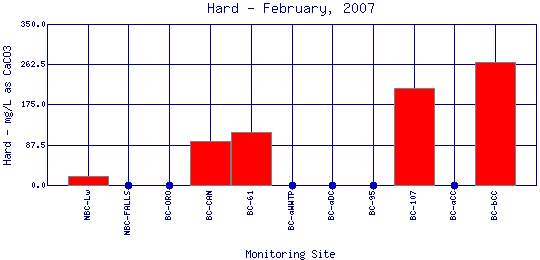 Hardness generally refers to the amount of calcium and magnesium in water. In household use, these cations (ions with a charge greater than +1) can prevent soap from sudsing and leave behind a white scum in bathtubs. In the aquatic environment, calcium and magnesium help keep fish from absorbing metals, such as lead, arsenic, and cadmium, into their bloodstream through their gills. Therefore, the harder the water, the less easy it is for toxic metals to absorb onto gills. Water in the Boulder Creek watershed is generally soft because the water comes mainly from melting snow which is low in minerals and metals.