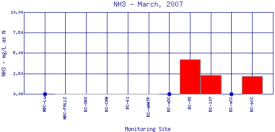 The above map indicates water quality monitoring sites. To view data at a specific site select it from the map with the mouse.