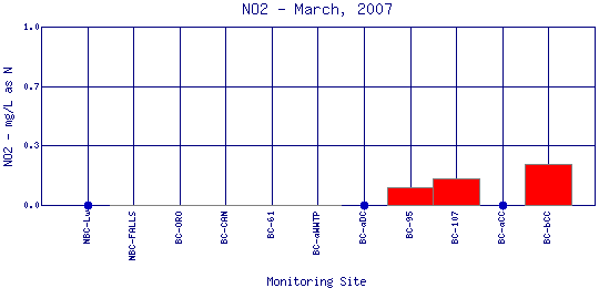 Longitudinal Nitrite Profiles for March, 2007