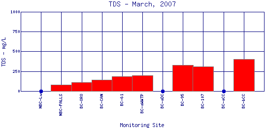 Longitudinal Total Dissolved Solids Profiles for March, 2007