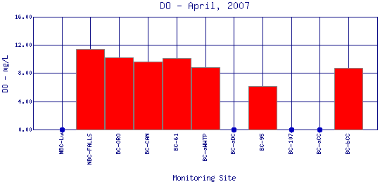 Longitudinal Dissolved Oxygen Profiles for April, 2007