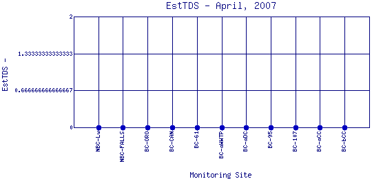 The above map indicates water quality monitoring sites. To view data at a specific site select it from the map with the mouse.