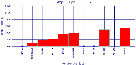 The above map indicates water quality monitoring sites. To view data at a specific site select it from the map with the mouse.