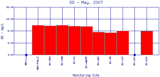 Longitudinal Dissolved Oxygen Profiles for May, 2007