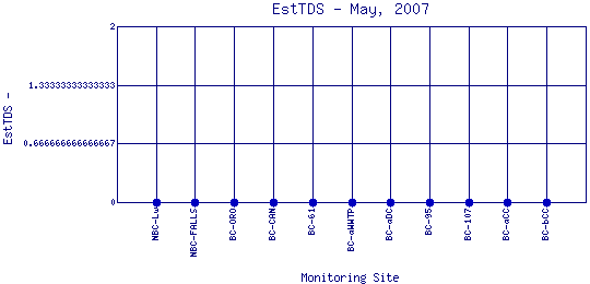 The above map indicates water quality monitoring sites. To view data at a specific site select it from the map with the mouse.