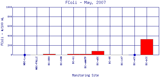 Longitudinal Fecal Coliform Profiles for May, 2007