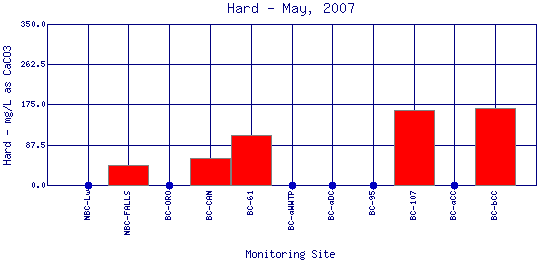 The above map indicates water quality monitoring sites. To view data at a specific site select it from the map with the mouse.
