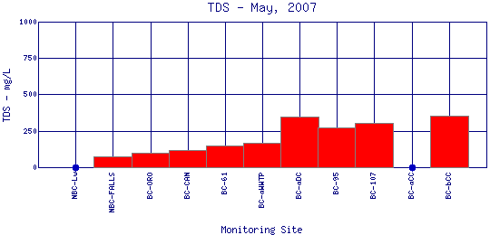 Longitudinal Total Dissolved Solids Profiles for May, 2007
