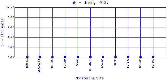 The above map indicates water quality monitoring sites. To view data at a specific site select it from the map with the mouse.