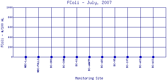 Longitudinal Fecal Coliform Profiles for July, 2007