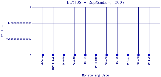 The above map indicates water quality monitoring sites. To view data at a specific site select it from the map with the mouse.