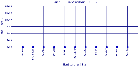 The above map indicates water quality monitoring sites. To view data at a specific site select it from the map with the mouse.
