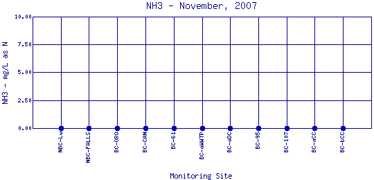 The above map indicates water quality monitoring sites. To view data at a specific site select it from the map with the mouse.