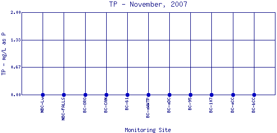 The above map indicates water quality monitoring sites. To view data at a specific site select it from the map with the mouse.