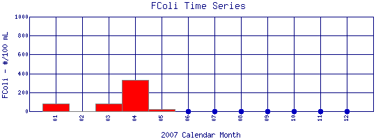 Fecal Coliform Time Series for 2007 Boulder Creek at 61st St. |