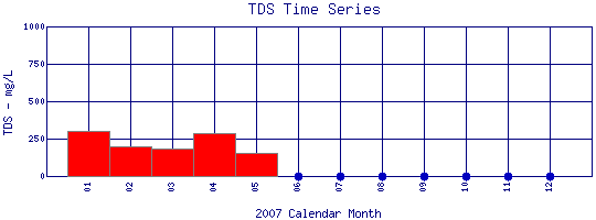 Total Dissolved Solids Time Series for 2007 Boulder Creek at 61st St. |