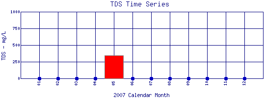 Total Dissolved Solids Time Series for 2007 Boulder Creek above Dry Creek |