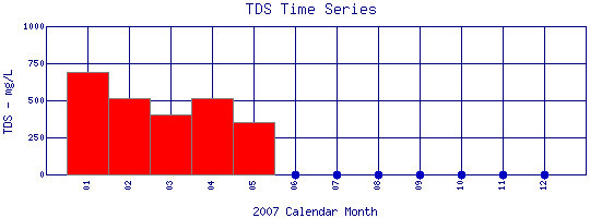 Total Dissolved Solids Time Series for 2007 Boulder Creek Below Coal Creek |