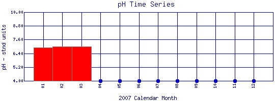 pH Time Series for 2007 Como Creek where it enters Lakewood Res. |