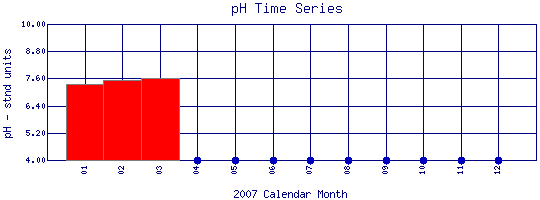 Select on the parameter name to view all pH time series plots on the basin map. Select on the table date to view stream pH profiles observed on that date. Select here to view all parameters at this site.