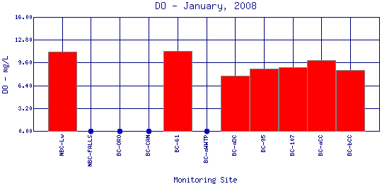Longitudinal Dissolved Oxygen Profiles for January, 2008
