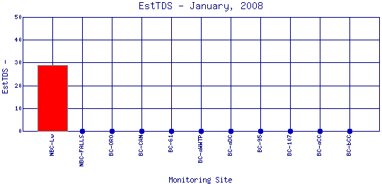 The above map indicates water quality monitoring sites. To view data at a specific site select it from the map with the mouse.