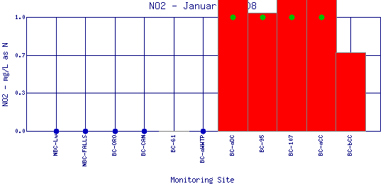 The above map indicates water quality monitoring sites. To view data at a specific site select it from the map with the mouse.
