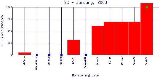 Longitudinal Specific Conductance Profiles for January, 2008