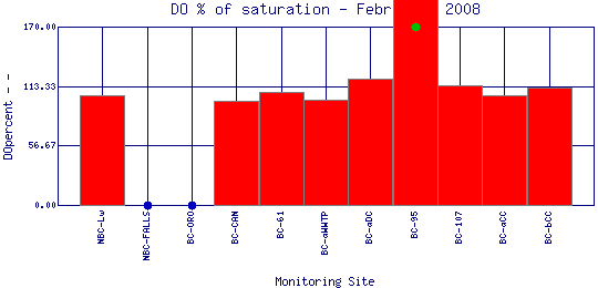 Longitudinal DO Percent of Saturation Profiles for February, 2008