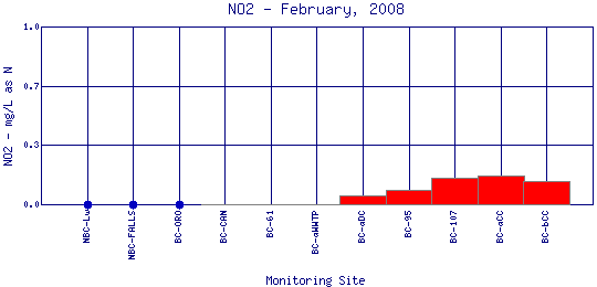 The above map indicates water quality monitoring sites. To view data at a specific site select it from the map with the mouse.
