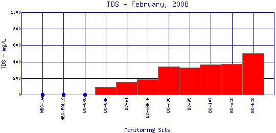 Longitudinal Total Dissolved Solids Profiles for February, 2008