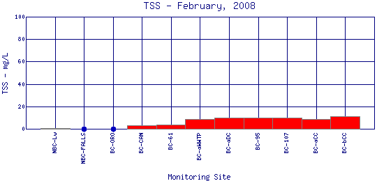 Longitudinal Total Suspended Solids Profiles for February, 2008